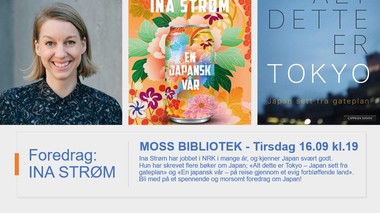 Ina Strøm er et kjent navn for mange. Hun har jobbet i NRK i mange år og har også skrevet flere bøker om Japan; «Alt dette er Tokyo – Japan sett fra gateplan» og «En japansk vår – på reise gjennom et evig forbløffende land»