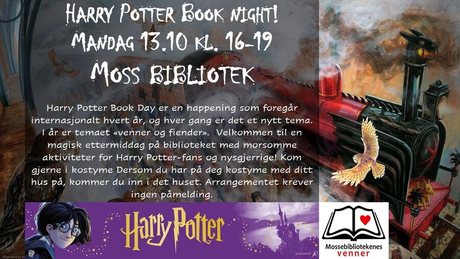 Mandag 13. oktober feirer vi Harry Potter Book Day på Moss bibliotek!