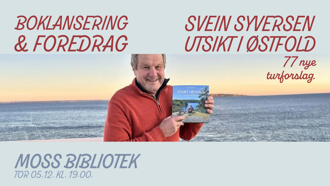 Få med deg lanseringen av Svein Syversens nye turbok "Utsikt i Østfold". Gratis inngang.