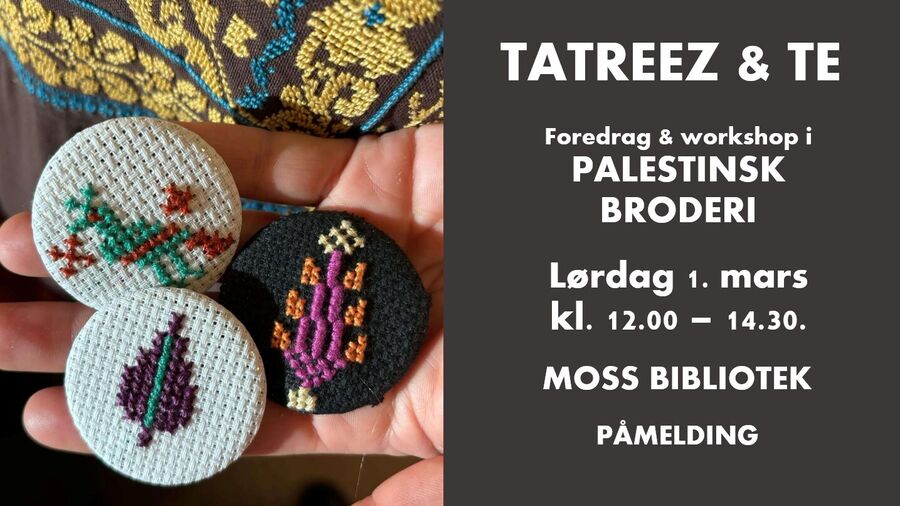 Vi inviterer til en workshop med foredrag om identitet, tilhørighet og motstand og praktisk innføring i tradisjonelt palestinsk korstingsbroderi (tatreez fallahi). Deltakerne på workshopen kan velge mellom ulike motiver de ønsker å brodere til å lage button.