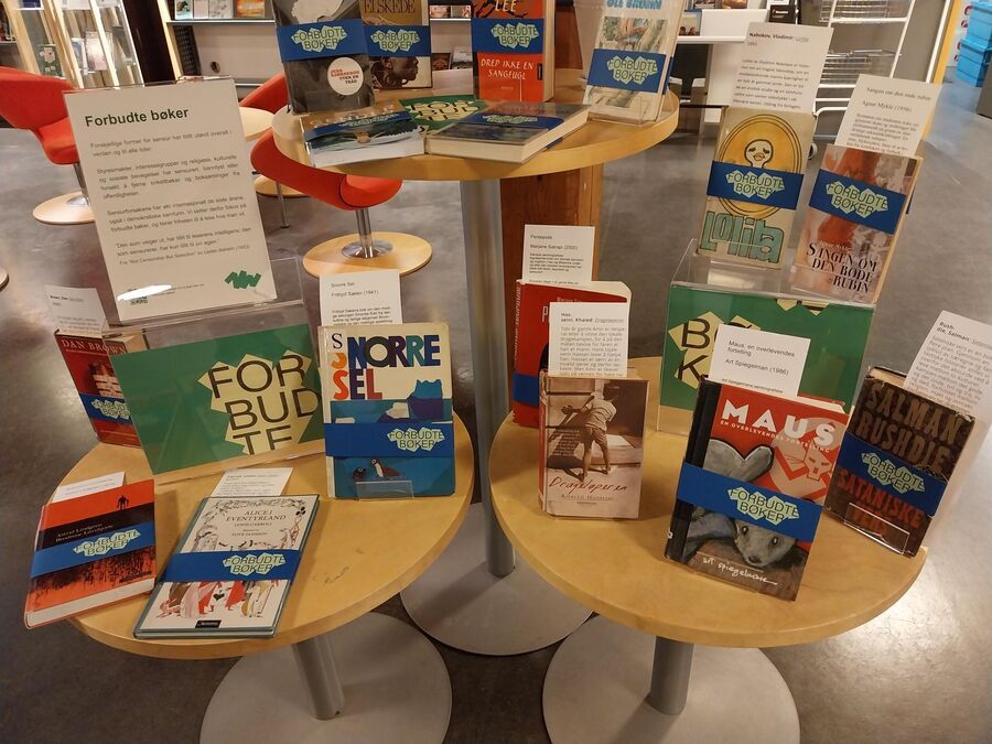 Vi stiller ut bøker med en eller annen form for sensurhistorie. Bøkene kan lånes, og er hentet fra vår mangfoldige samling. Vi håper utstillingen inspirerer til lesing og diskusjon rundt temaene ytrings- og lesefrihet!