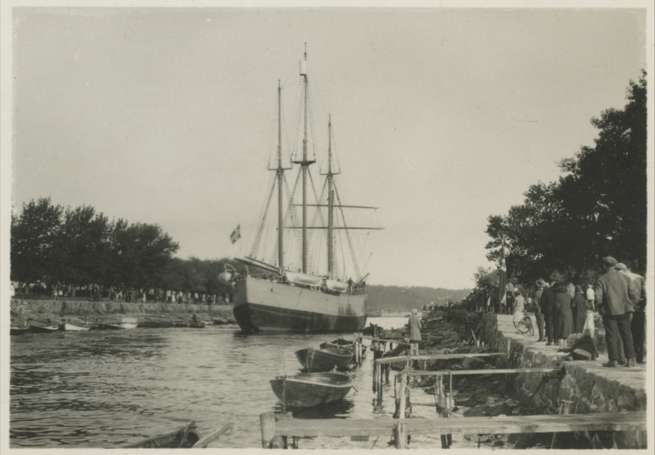 I 1930 besøkte skuta "Fram" som fraktet Amundsen og mannskapet hans Moss - på bildet farter den opp kanalen. Bildet er hentet fra Vogt-samlingen som er tilgjengelig via Digitalt museum.